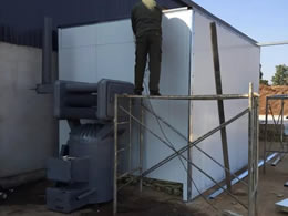 設備采用拼裝結構,便于安裝、調試和后期維護、保養。密集烤房生物質熱源設備由爐體、散熱器、自動上料裝置以及自控儀、循環風機等部件拼裝而成,方便后期維護、保養與拆卸。