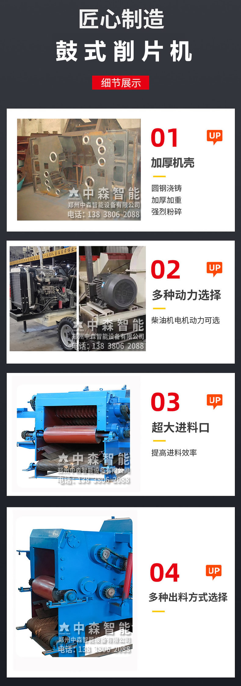 【產品介紹】中森智能專注木材鼓式削片機20余年,從研發設計生產到銷售,現已形成一體化制造商及售后服務商;鼓式木片機是加工生物質顆粒,造紙,木炭,多種板材,食用菌,生物發電,園林,木屑,有機肥等農,林,工業生產配套設備.可粉碎多種雜木,木材,木頭,模板,邊角料,樹枝,竹子,園林綠化,食用菌等物料。