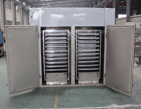 304不銹鋼元胡烘干箱:熱風循環烘干機廣泛適用于制藥、化工、食品、輕工、重工等行業物料及無污染產品的加熱固化、干燥脫水,每批次加工量在100-500公斤左右。熱風循環烘箱采用耐高溫循環風機。通過電熱管熱的強制熱風在箱內進行循環,增強了熱量的傳遞,提高了水分蒸發速率,縮短了干燥時間。整個箱體采用全封閉結構,熱空氣箱內循環。烘車、烘盤尺寸統一,可以互換,烘盤有平板盤、沖孔盤和網盤可選。有特殊要求,可定制手工盤。控溫精確。箱內設有可調式均風板,箱內溫度均勻,高溫120度。采用低噪音節能型內置式循環風機,運轉平衡、大大的降低了設備的噪音和熱量損耗,功率為3-18千瓦每小時。
