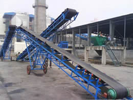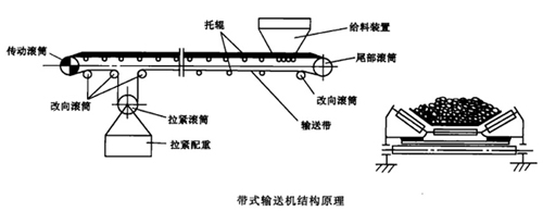 膠帶輸送機主要由機架、輸送皮帶、皮帶輥筒、張緊裝置、傳動裝置等組成。機身采用優(yōu)質(zhì)鋼板連接而成 ,由前后支腿的高低差形成機架,平面呈一定角度傾斜。機架上裝有皮帶輥筒、托輥等,用于帶動和支承輸送皮帶。有減速電機驅(qū)動和電動滾筒驅(qū)動兩種方式。