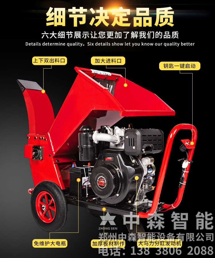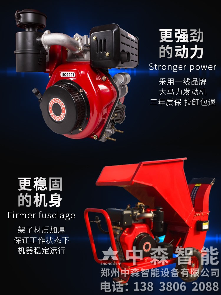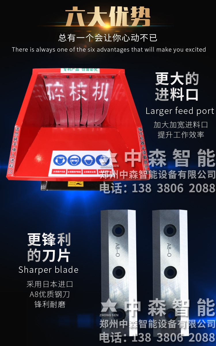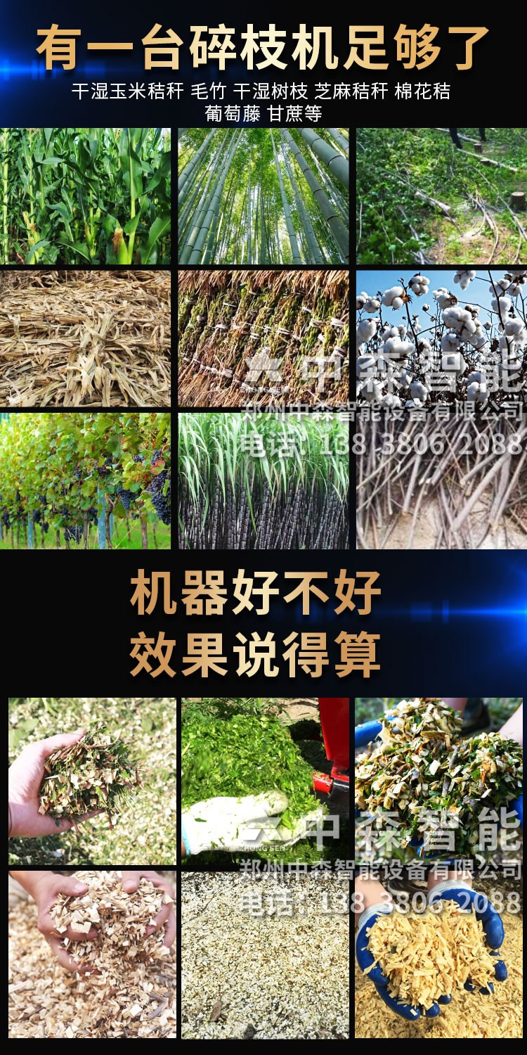 【產品介紹】中森智能樹枝碎枝機可以將廢棄樹枝、廢棄樹杈、廢棄樹干、秸稈、玉米芯、玉米桿、竹子等進行粉碎加工的果園樹枝粉碎機這款果樹碎枝機通過葡萄枝藤粉碎機廠家不斷的改進的同時樹枝碎枝機的占地面積也小,使用起來非常的方便。樹枝碎枝機具有低成本,高利潤,低能耗等特點。