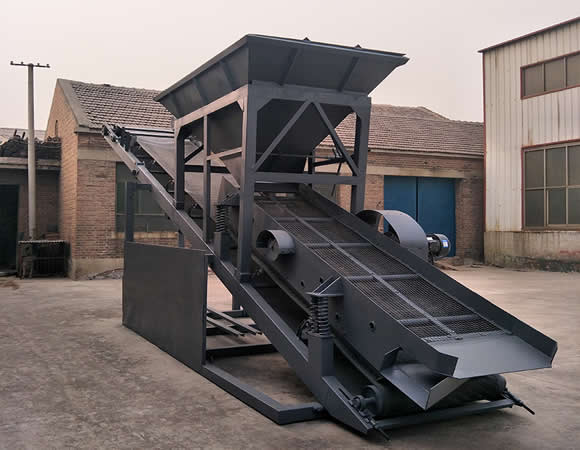3.拆裝轉場簡便:振動篩沙機設備的高度整體性便于施工現場存放或轉場運輸,拆裝部件只有成品堆料皮帶機,松開底部固定螺栓和吊掛鋼絲繩,將成品皮帶機塞入主框架底面即可。